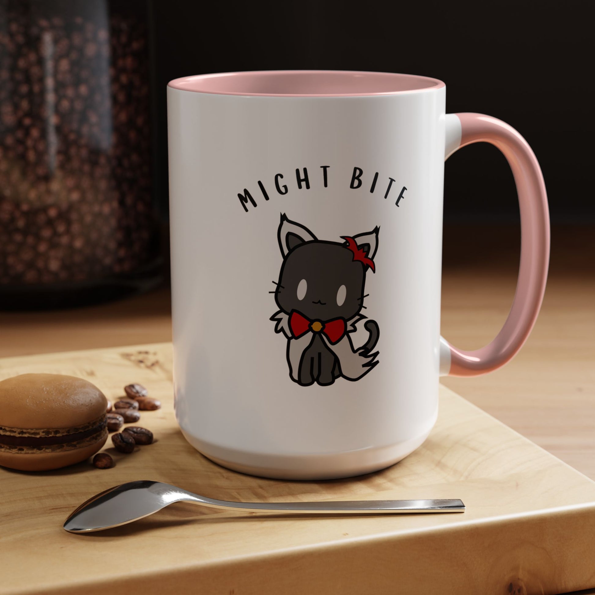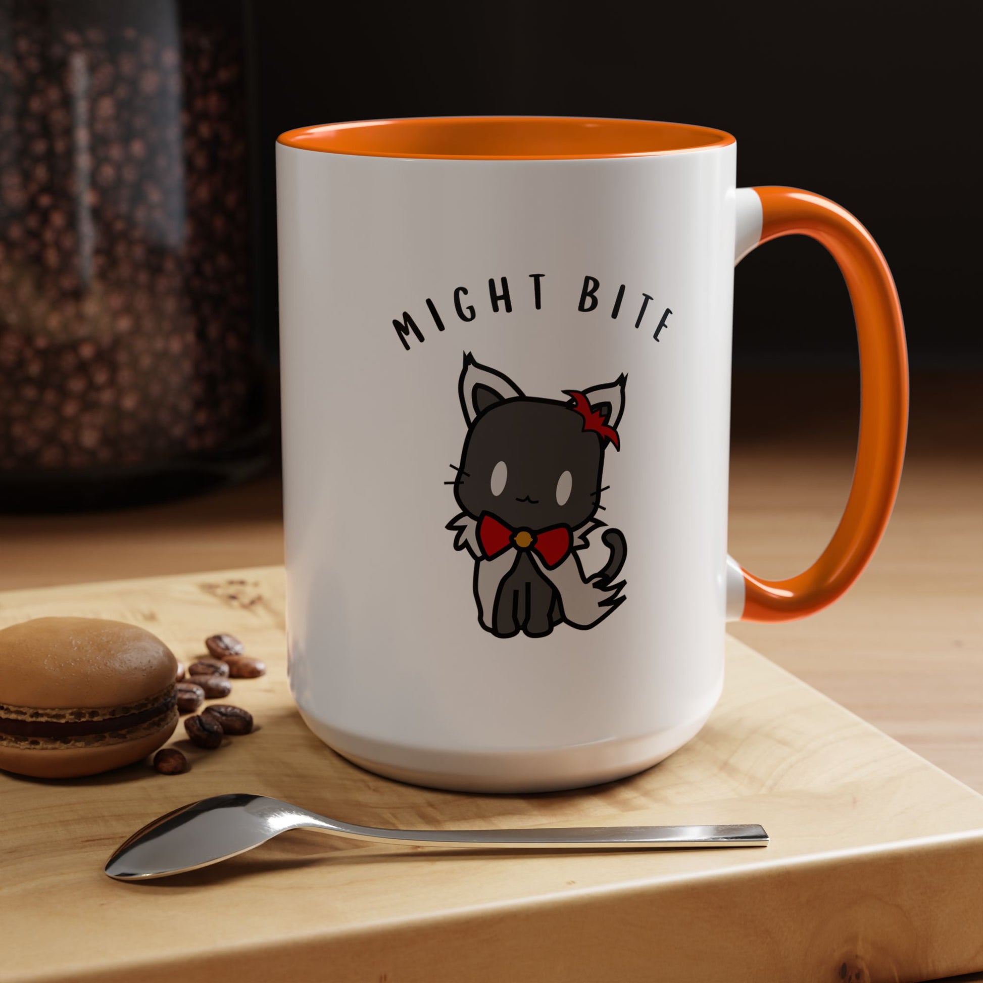 Cute Cat Themed Coffee Mug with Might Bite Design, Animal Lover Gift, Black Accent Mug, Ideal for Cat Owners, Fun Kitchen Decor.