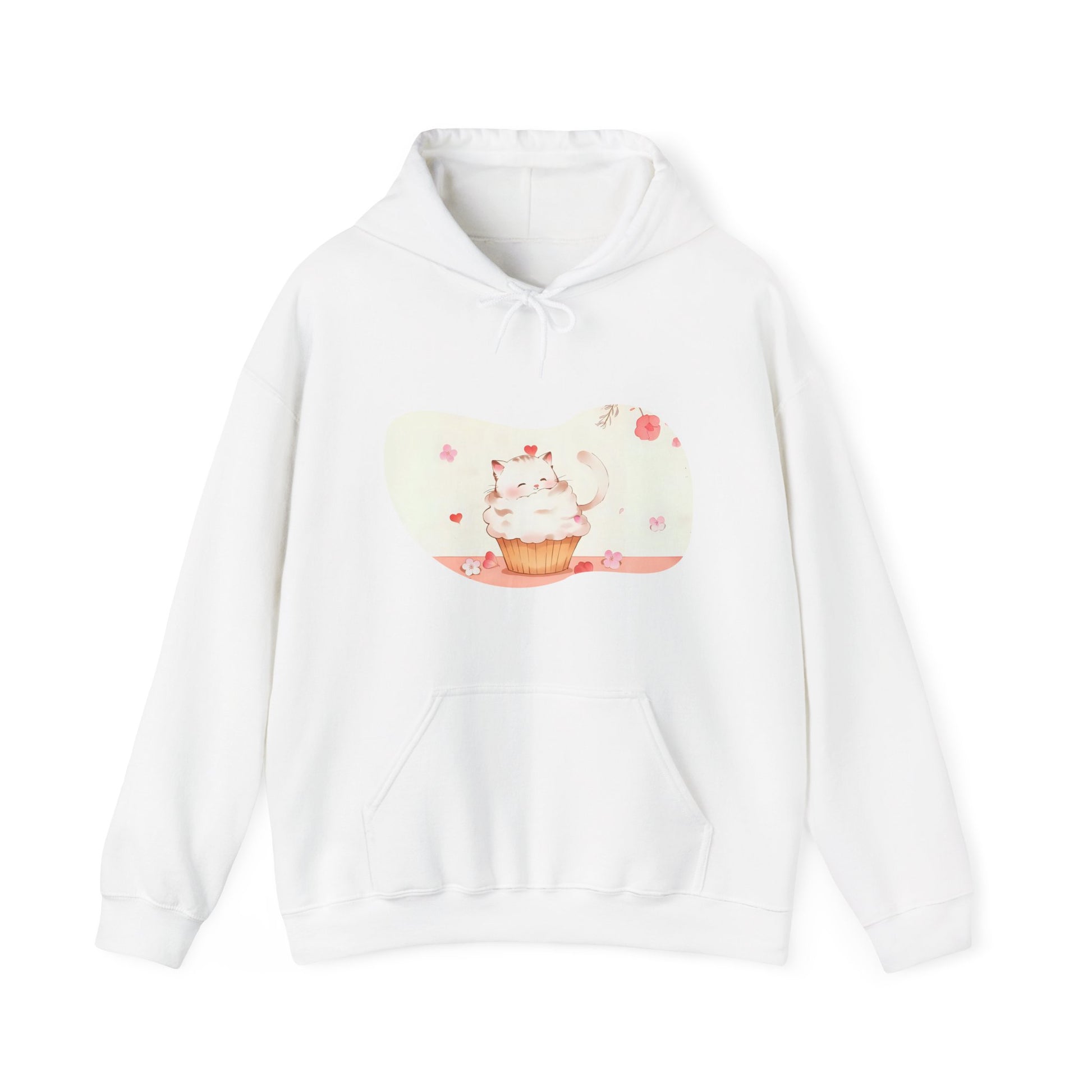 Embrace comfort and style with this cozy hooded sweatshirt. Perfect for lounging at home, running errands, or enjoying outings with friends, this sweatshirt effortlessly enhances your casual wardrobe. The cheerful cupcake design adds a playful touch, making it an ideal gift for foodies, dessert lovers and cat lovers. Celebrate birthdays, cozy evenings, or just treat yourself to this delightful piece. Designed for those who appreciate relaxation and fun fashion, it’s a must-have for all seasons! Cute Cat Cupcake Design, Cozy Gift, Cat Lover Sweatshirt, Bakers, Cute Clothing, Fun Apparel.